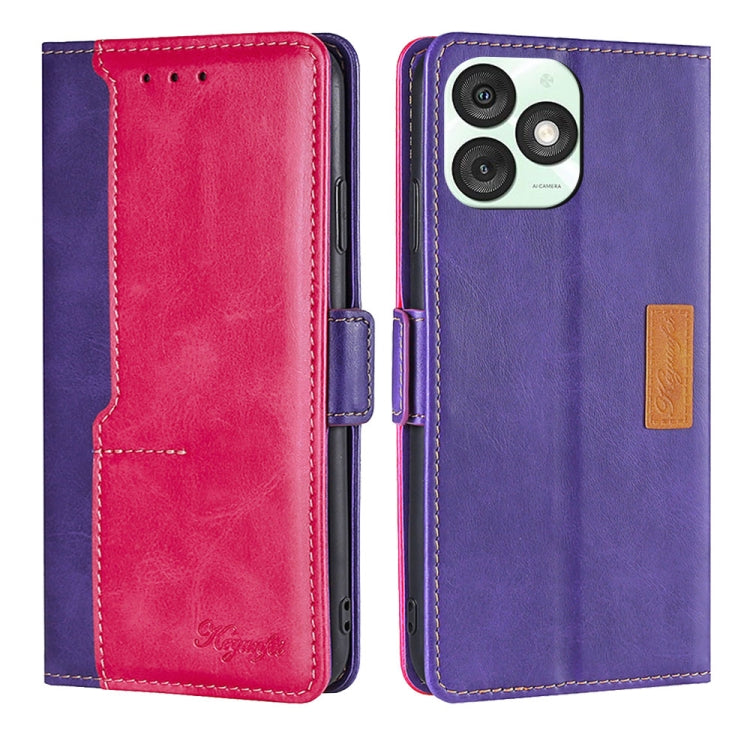 Funda de Cuero con Hebilla Lateral para Teléfono Itel A50 4G (Púrpura + Rojo Rosa)
