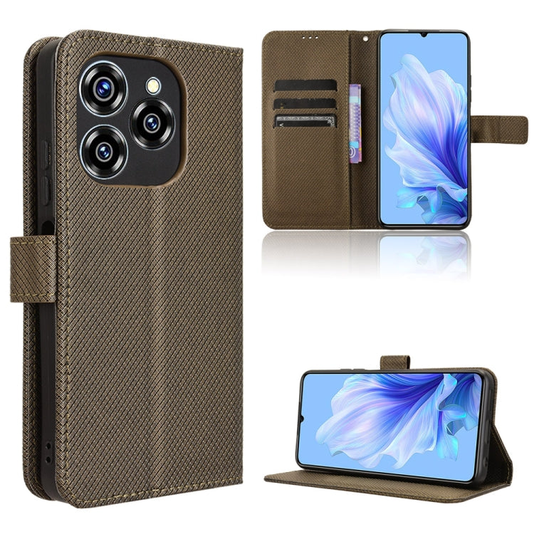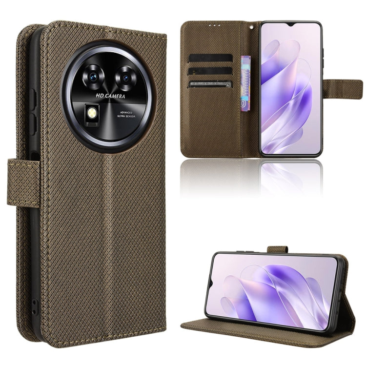 Funda de Cuero con Textura de Diamante para Teléfono Oukitel C53 (Marrón)