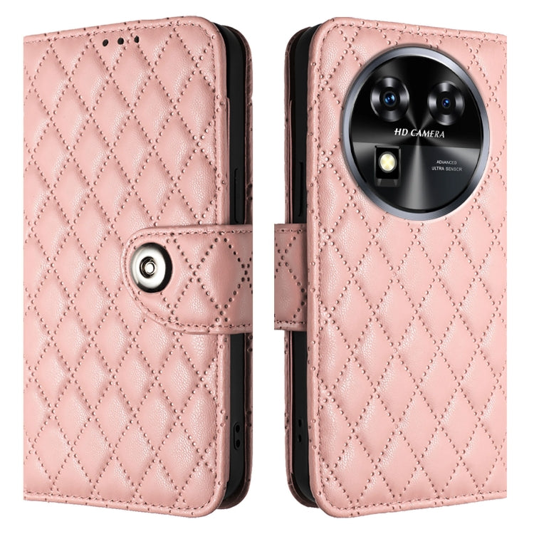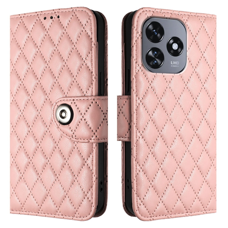 Funda para Teléfono Itel A70 con Tapa de Cuero Textura Rómbica y Cordón (Rosa)