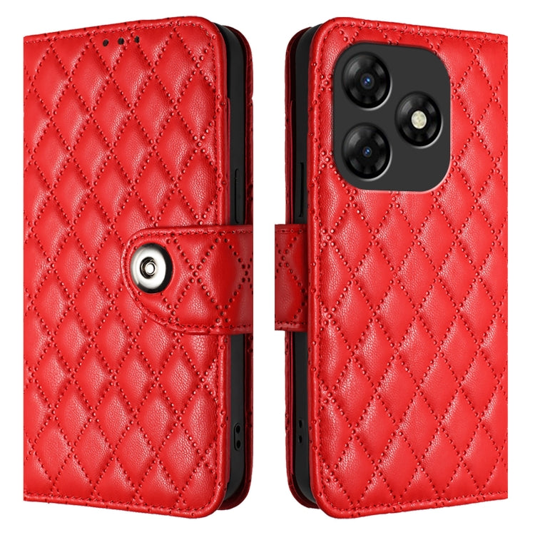 Funda para Itel P55 4G de Cuero con Tapa, Textura Rómbica y Cordón (Rojo)