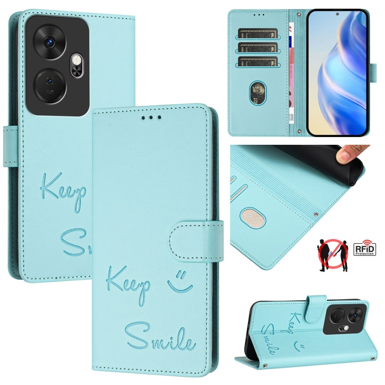 Funda de Cuero Rfid con Relieve Smile Embossing para Teléfono Itel P55+ (Verde Menta)