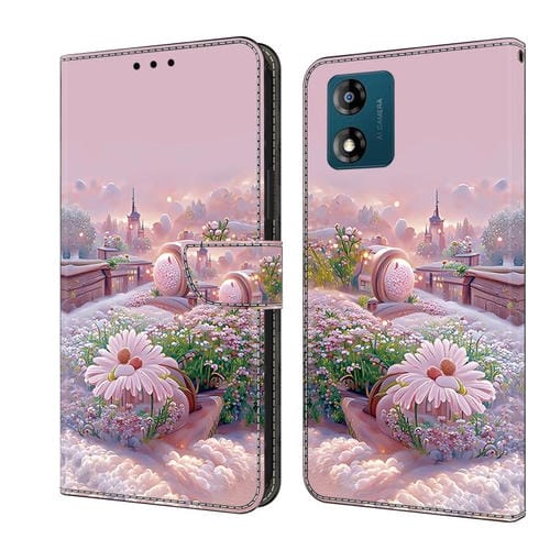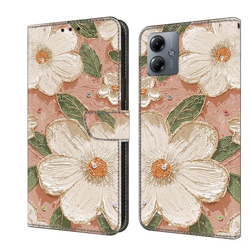 Funda de Cuero Pintada a Mano para Motorola Moto E13 (Flores de Cerámica)