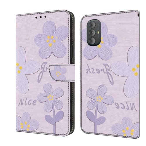 Funda de Cuero Pintada a Mano para Motorola Moto G Power 2022 (Flores Moradas)