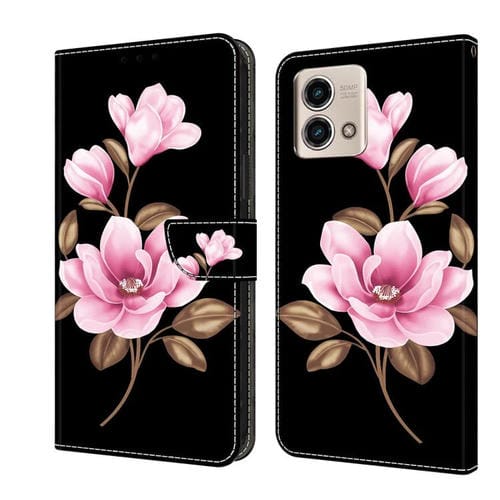 Funda de Cuero pintada a mano para Motorola Moto G Stylus 5G (2023) (Flores Negras)