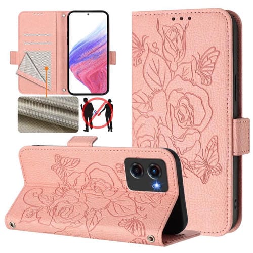 Funda de Cuero Antirrobo RFID con Relieve para Motorola Moto G05 (Rosa)