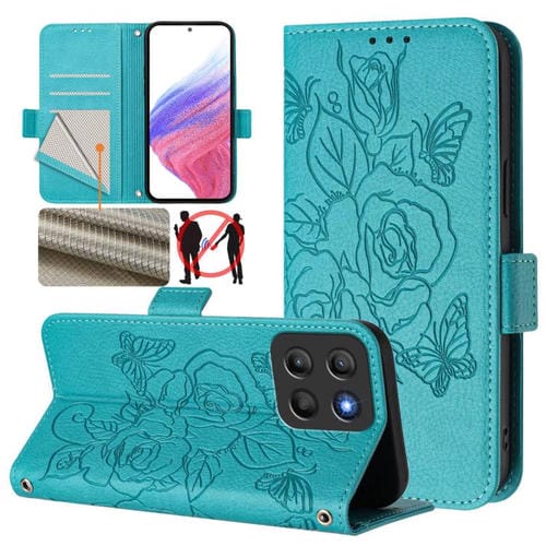 Funda de Cuero Antirrobo RFID con Relieve para Motorola Moto G15 (Azul Claro)