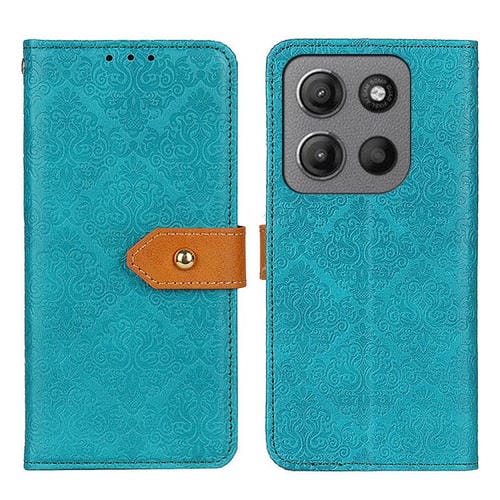 Funda de Cuero con Tapa y Diseño Floral Europeo para Motorola Moto G15 4G/G05 (Azul)