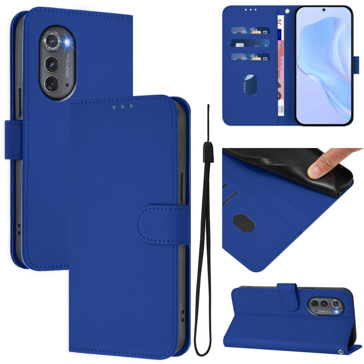 Funda de Piel Sintética con Cordón para Motorola Edge 2022 (Azul Oscuro)