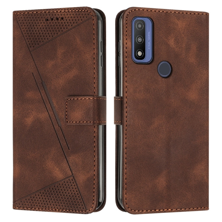 Funda de Cuero para Motorola Moto E20 / E30 / E40 Dream Triangle con Cordón (Marrón)