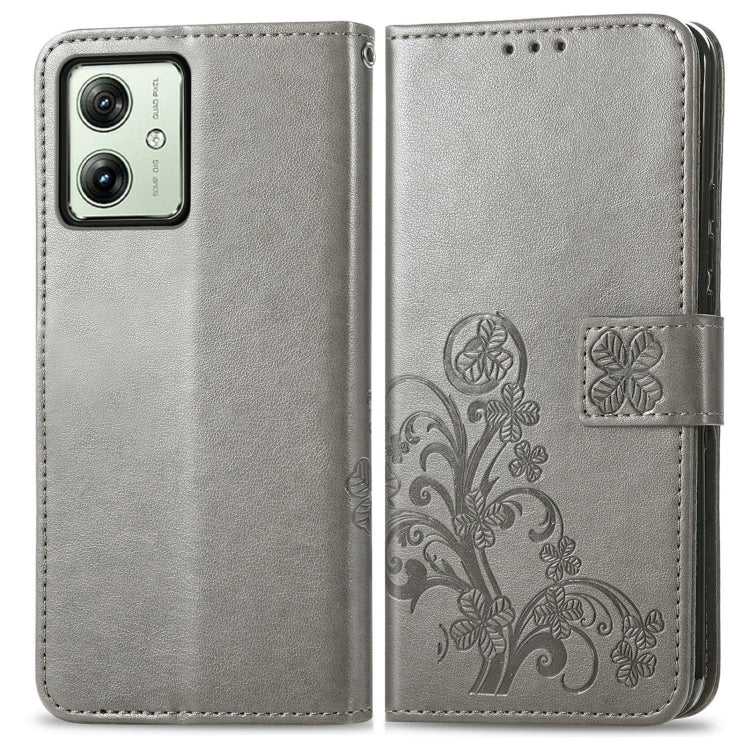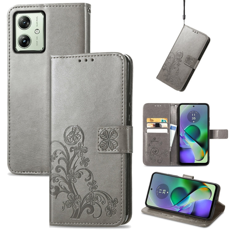 Funda para Motorola Moto G54 5G de Cuero Repujado con Cierre de Cuatro Hojas (Gris)