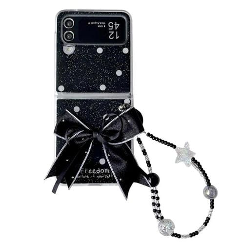 Funda para Samsung Galaxy Z Flip3 5G con diseño de puntos brillantes y lazo (negra)