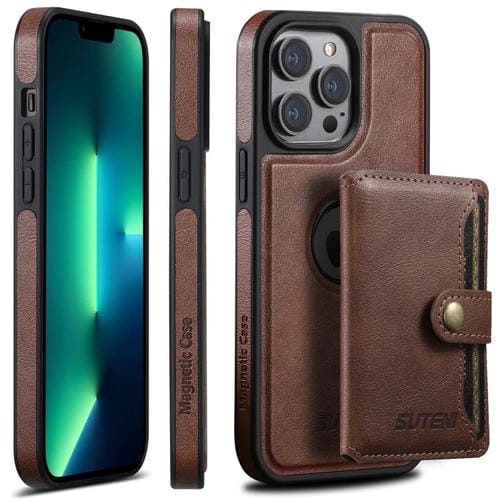 Funda para Teléfono iPhone 13 Pro Max Cuero Billetera Multifuncional para 7 Tarjetas (Marrón)