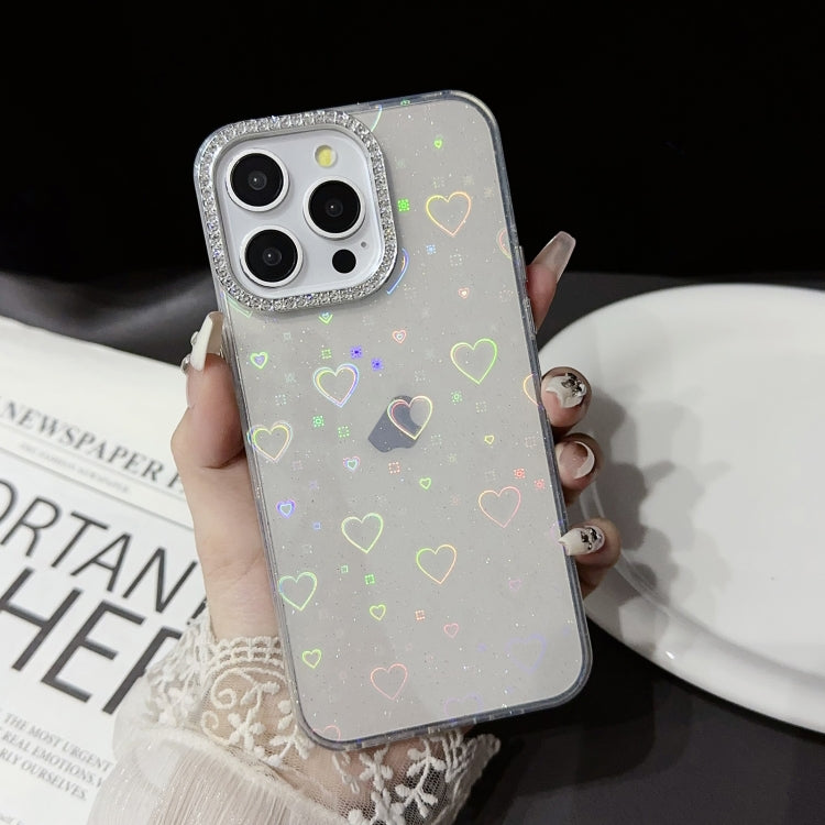 Funda para iPhone 14 Love Pattern Diamond Lens Frame Imd Acrílico (Rosa)