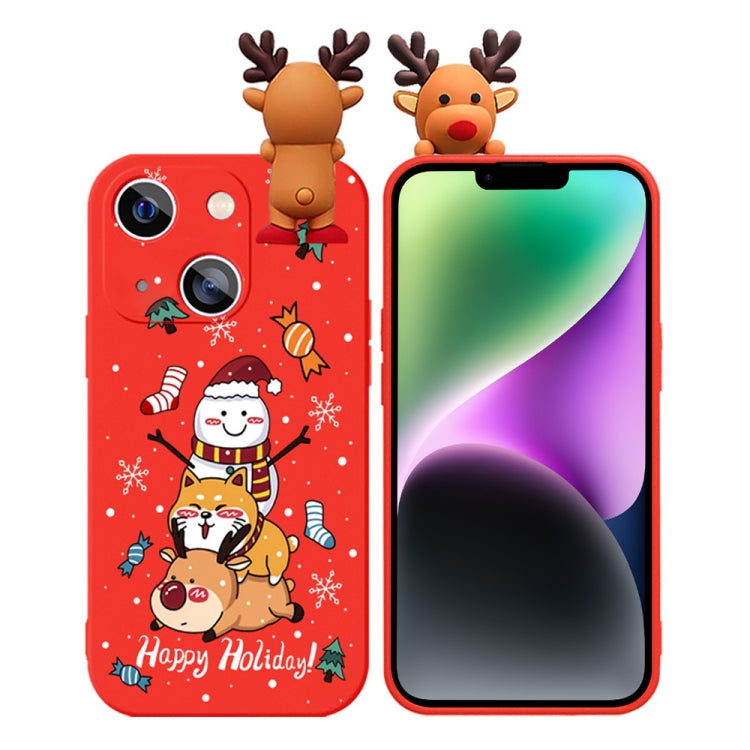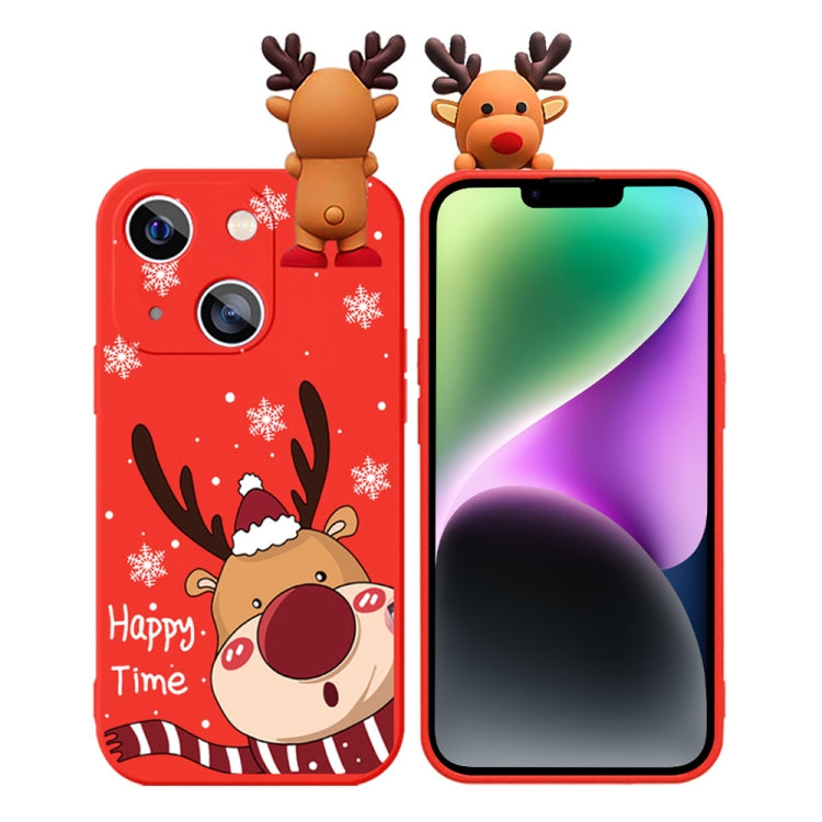 Funda de Teléfono TPU iPhone 14 Muñeco Ciervo Relieve Dibujo Coloreado (Alce)