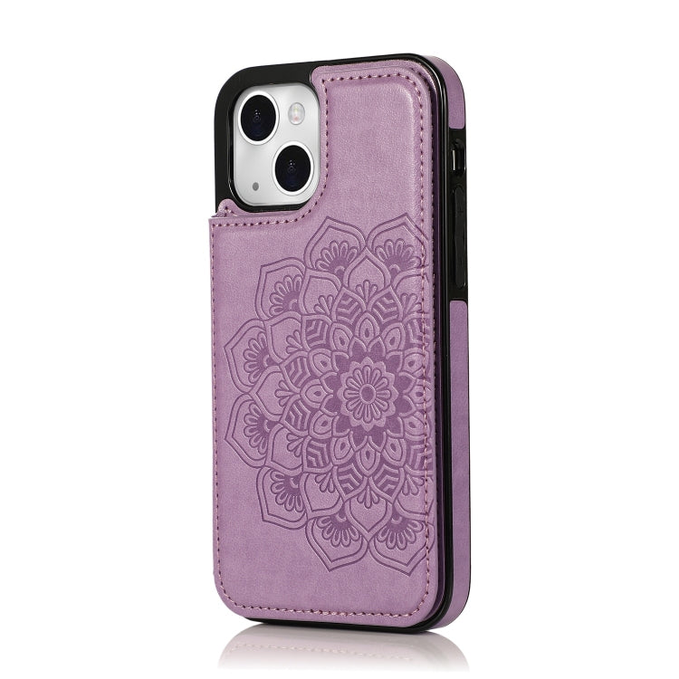 Funda para Teléfono iPhone 14 Doble Hebilla Mandala Cuero con Tapa Trasera (Púrpura)