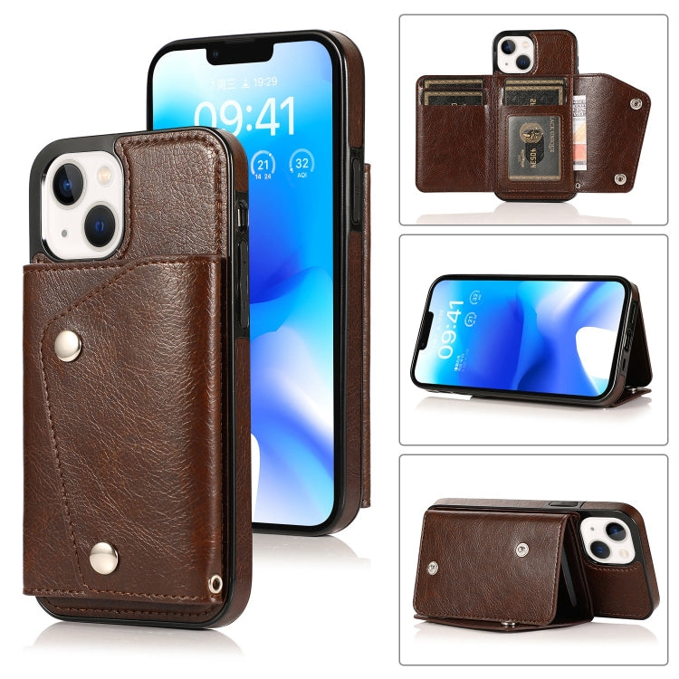 Funda para teléfono iPhone 14 con ranuras para tarjetas PU + TPU (Marrón)