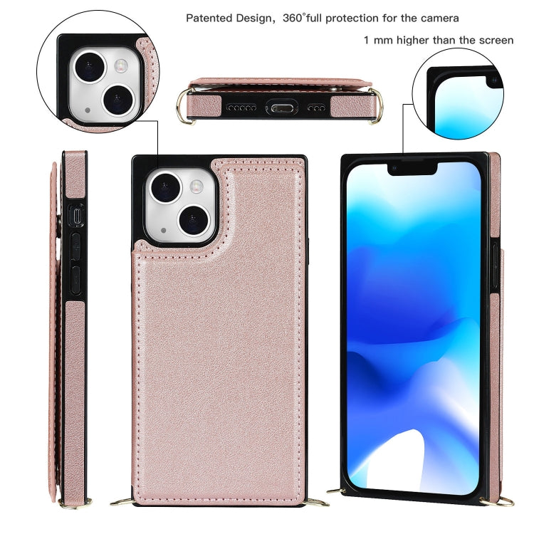 Funda para iPhone 14 Cross-Body Square Dual-Hebilla Tarjeta Flip Wallet (Rose Gold)
