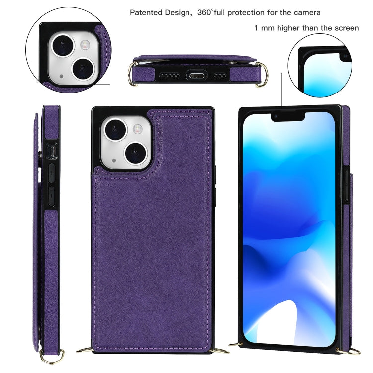Funda para iPhone 14 Cross-Body Square Dual-Hebilla Tarjeta Flip Wallet (Púrpura)