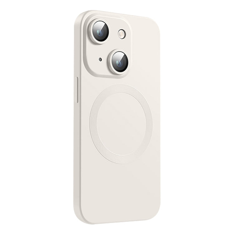 Funda de Silicona LĂquida Magsafe para iPhone 15 Plus con Textura de Cd (Blanca)