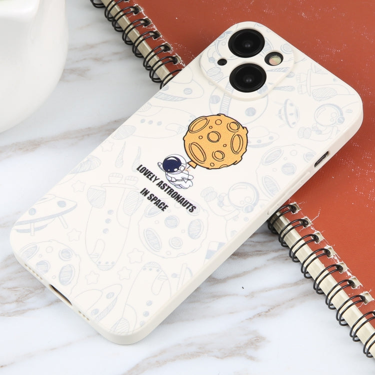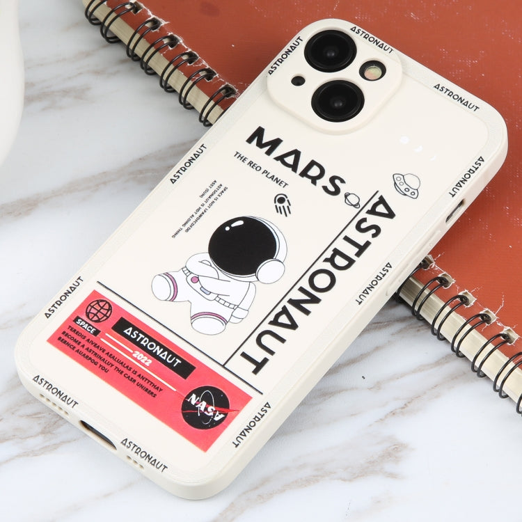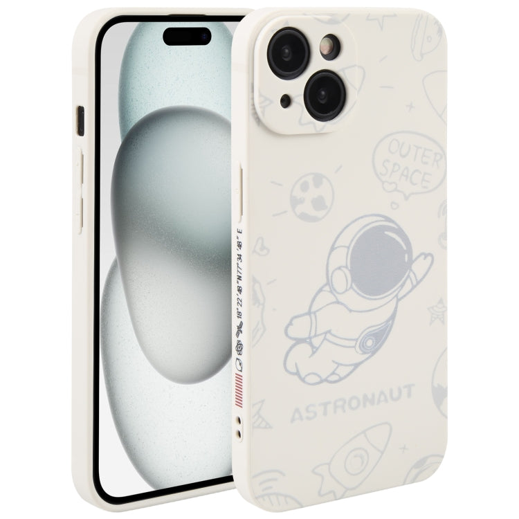 Funda para teléfono iPhone 15 Plus Borde Recto Silicona Patrón Astronauta (White)