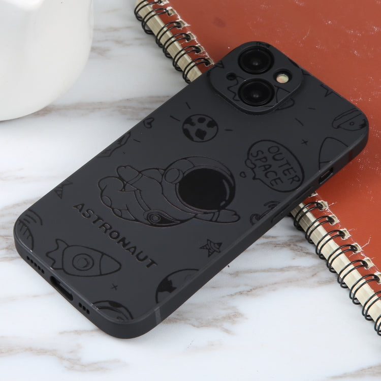 Funda para Teléfono iPhone 15 Plus Borde Recto Silicona Patrón Astronauta (Black)