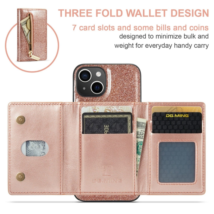 Funda de Cuero para iPhone 15 Plus Dg.Ming M3 Series Glitter Powder Card Bag (Oro Rosa)