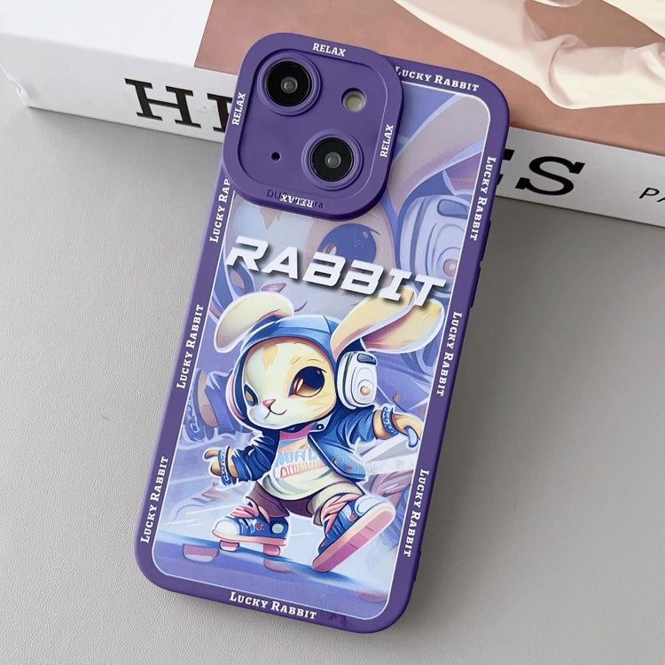 Funda para Teléfono iPhone 15 Plus Liquid Angel Eyes Hip Hop Rabbit TPU (Pétalo Morado)