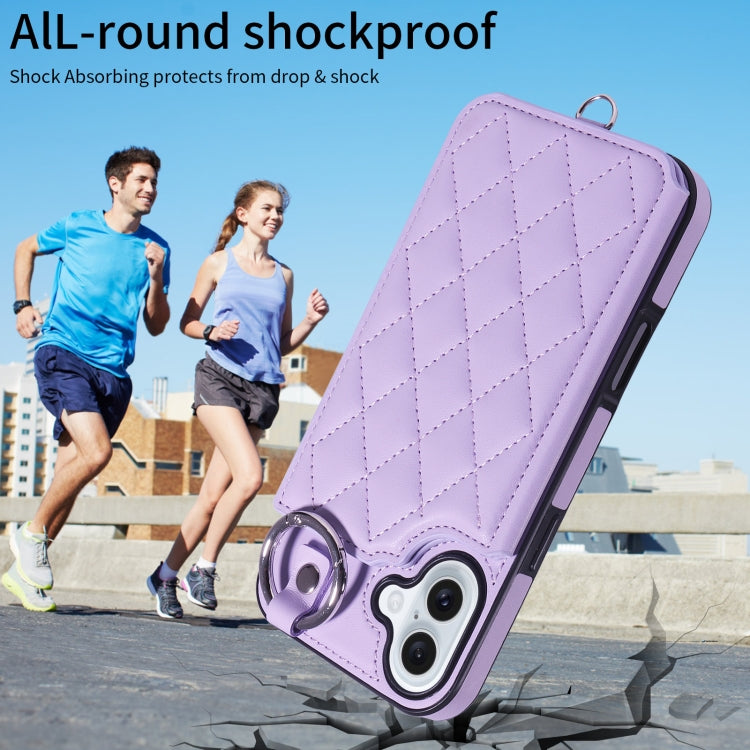 Funda para Teléfono iPhone 16 Plus Textura Rómbica Cordón Corto (Morado)