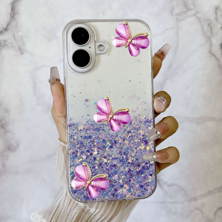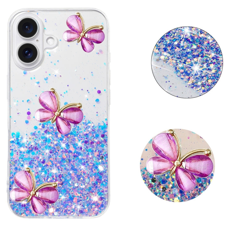 Funda TPU iPhone 16 Plus Diseño Mariposa Purpurina Cielo Estrellado Luminoso (Morado)