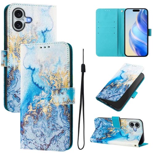 Funda de Cuero para iPhone 16 Patrón de Dibujo Artístico (Mármol Oceánico)