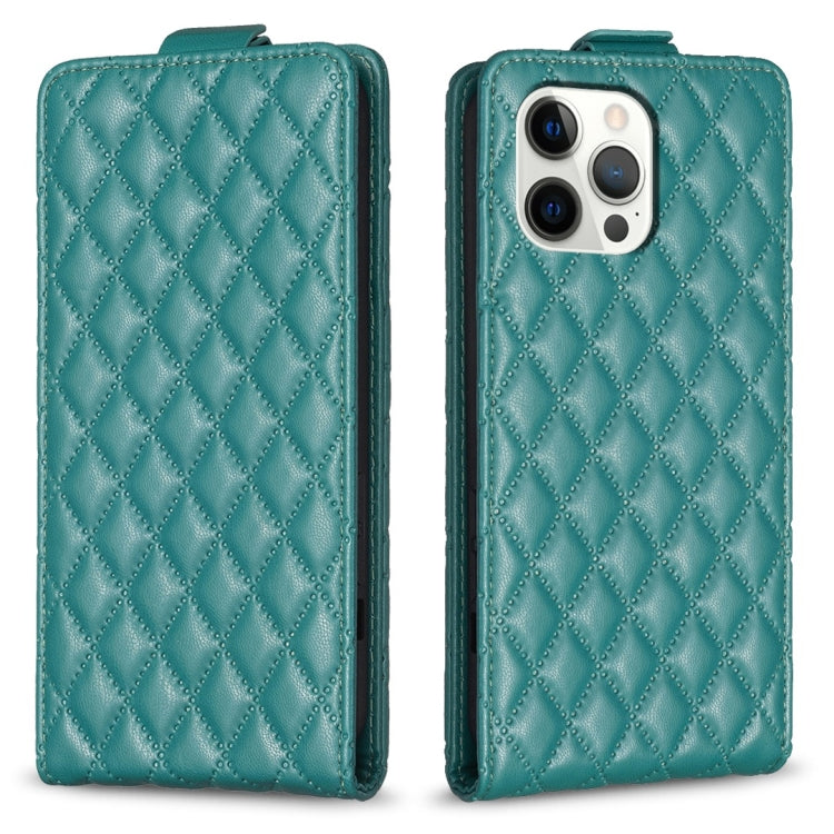 Funda de Cuero con Tapa Vertical para iPhone 12 Pro Max Diamond Lattice (Verde)
