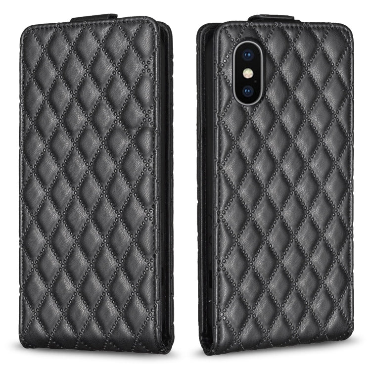 Funda para iPhone X / Xs Diamond Lattice Cuero con Tapa Vertical (Negro)