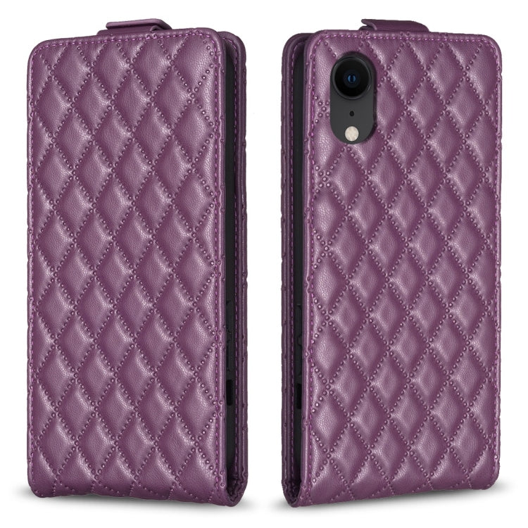Funda de Cuero para iPhone Xr Diamond Lattice con Tapa Vertical (Púrpura Oscuro)