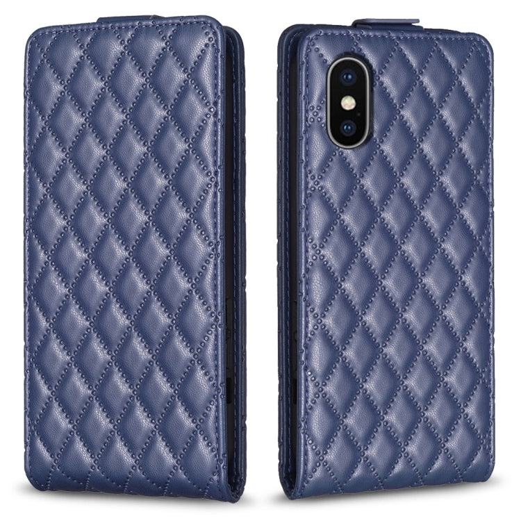 Funda para iPhone Xs Max Diamond Lattice de Cuero con Tapa Vertical (Azul)
