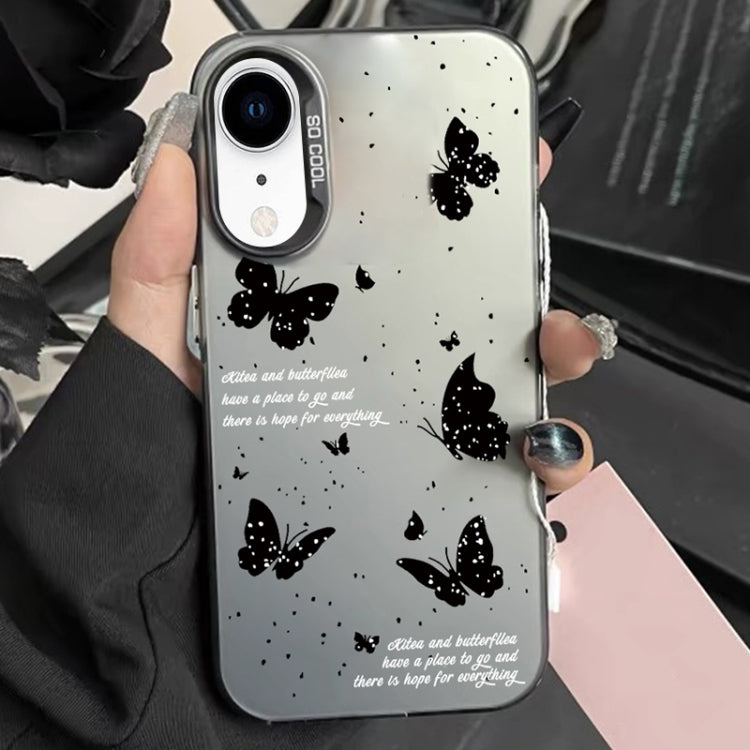 Funda Híbrida para iPhone Xr TPU y PC con Pintura Plateada (Mariposa de Tinta Negra)