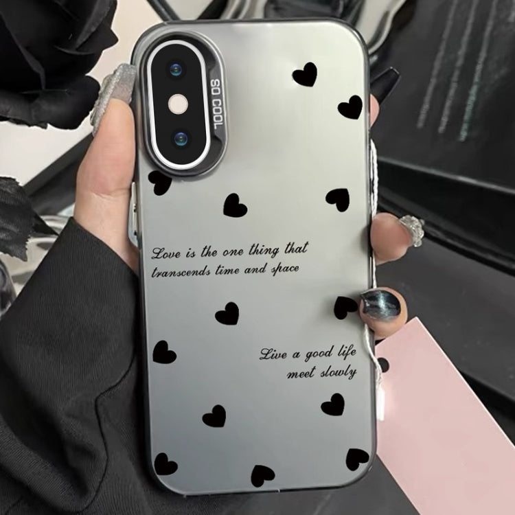 Funda híbrida para iPhone Xs Max TPU para PC con Pintura Plateada (Love Hearts Black)