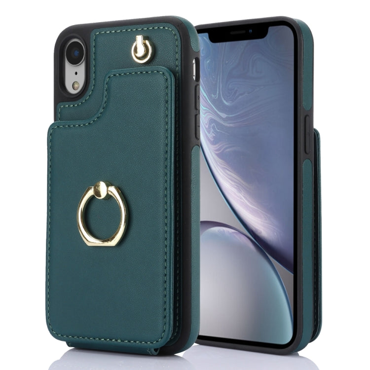 Funda para Teléfono iPhone Xr Ym006 con Soporte para Anillo y Tarjeta (Negro)