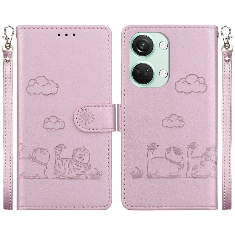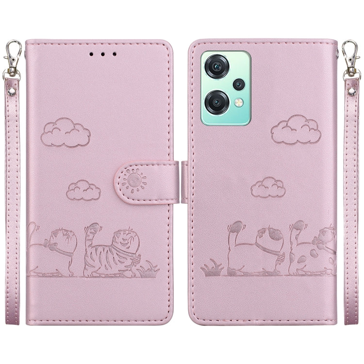 Funda de Cuero Rfid con Diseño de Gatos para OnePlus Nord 4 (Oro Rosa)