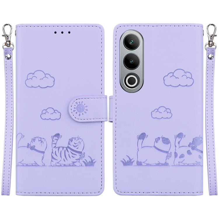 Funda de Cuero Rfid para OnePlus Nord Ce4 5G con Diseño de Gatos (Morado)
