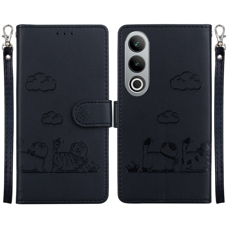 Funda de Cuero Rfid para OnePlus Nord Ce4 5G con Diseño de Gatos (Negra)