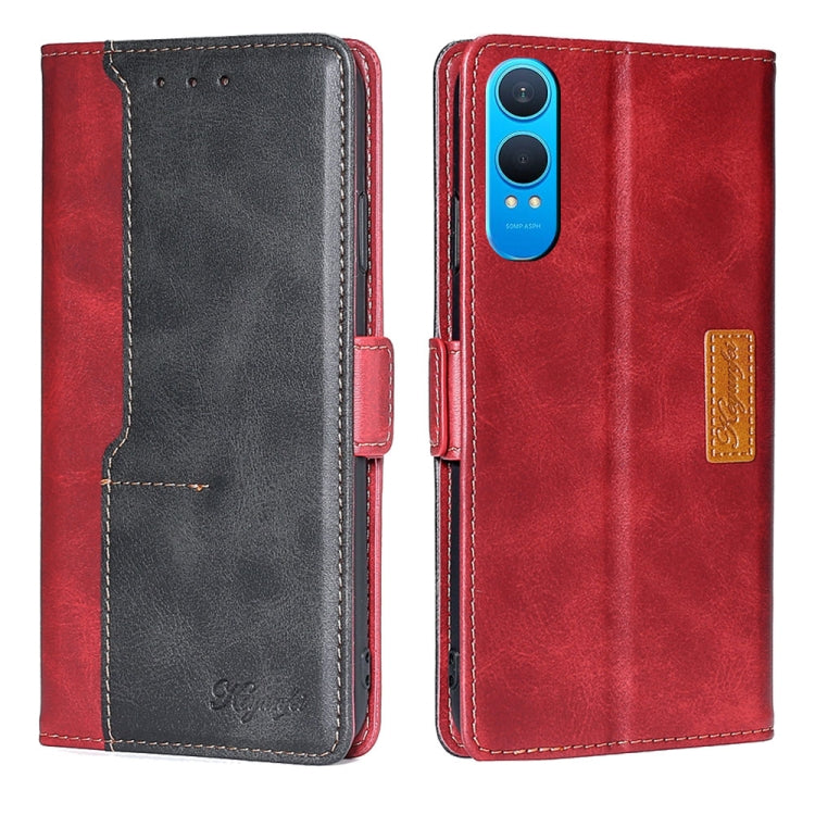 Funda de Cuero con Hebilla Lateral para OnePlus Nord Ce 4 Lite 5G (Rojo + Negro)