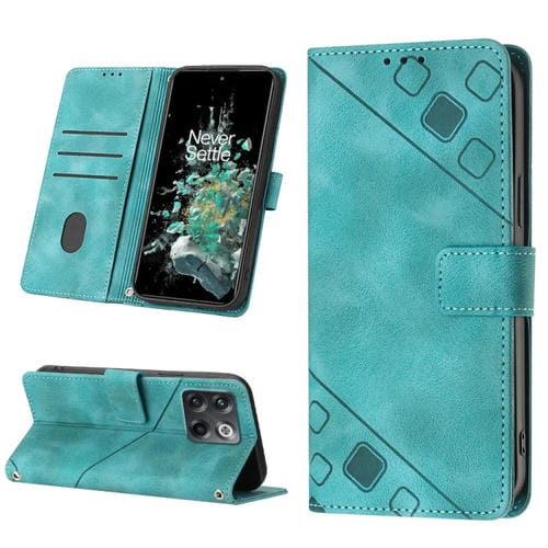 Estuche para OnePlus 10T 5G de Cuero en Relieve con Tacto de Piel (Azul)