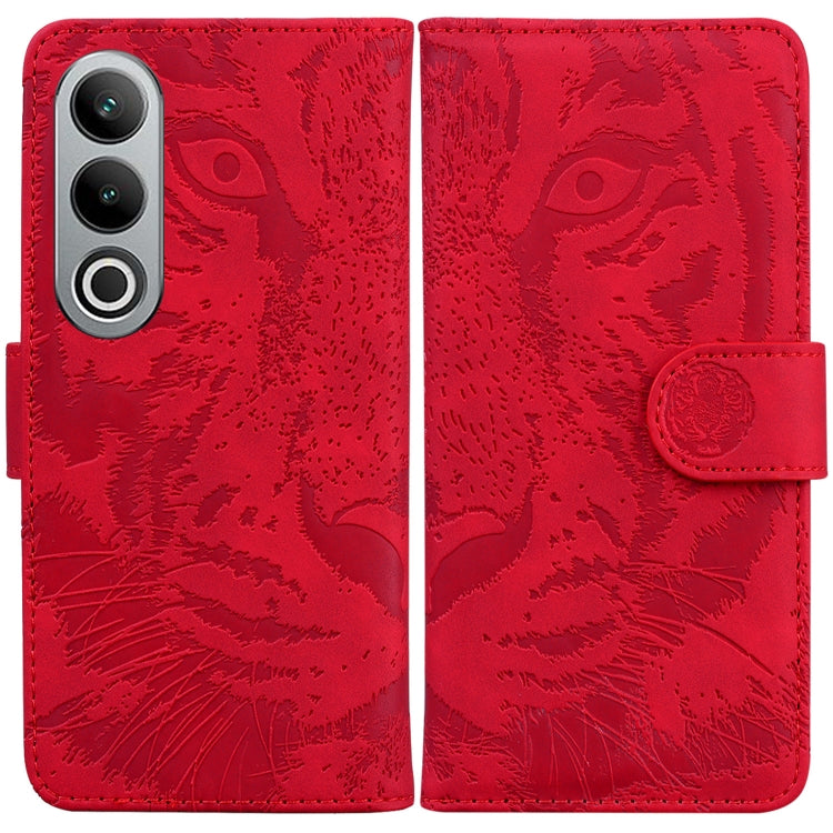 Funda de Cuero con Tapa para OnePlus Nord Ce4 5G Tiger Embossed Pattern (Rojo)