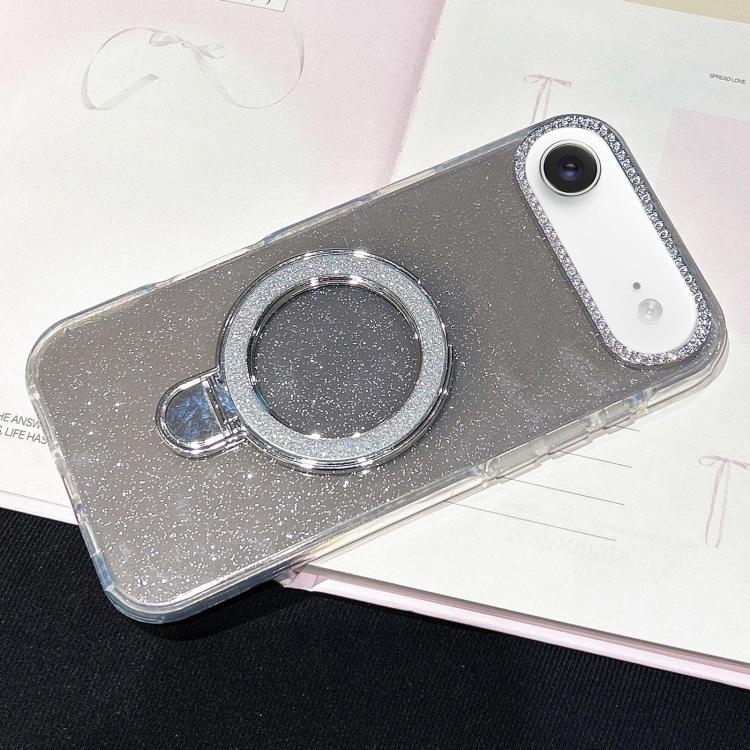 Funda MagSafe con purpurina degradada y diamantes para iPhone Air (blanca)