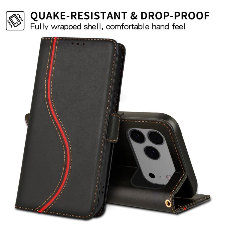 Funda de cuero con hebilla lateral y curva S para iPhone 17 Pro (negra)