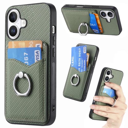 Funda de fibra de carbono con anillo para tarjeta para iPhone 17 (verde)