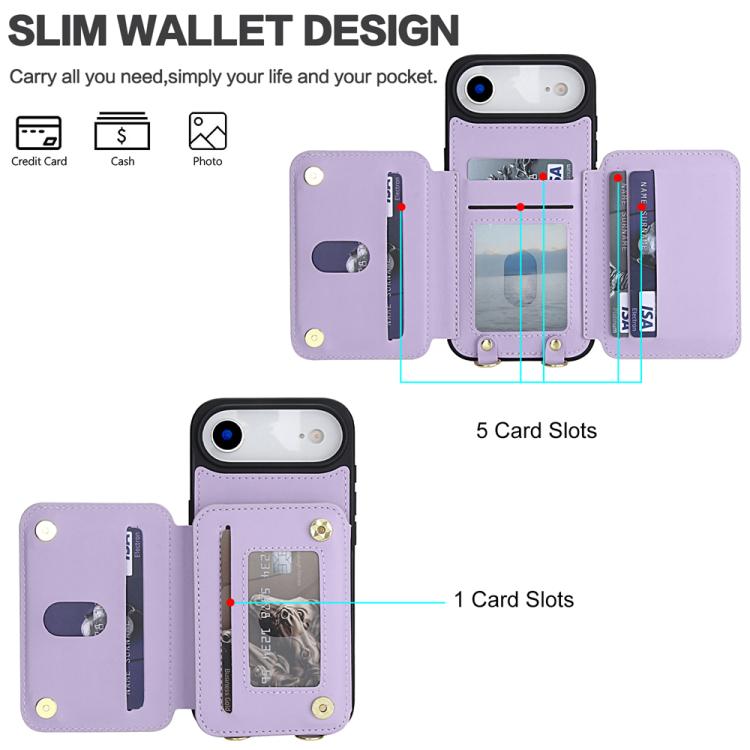 Funda de cuero antirrobo RFID con hebilla lateral para iPhone Air (morado oscuro)