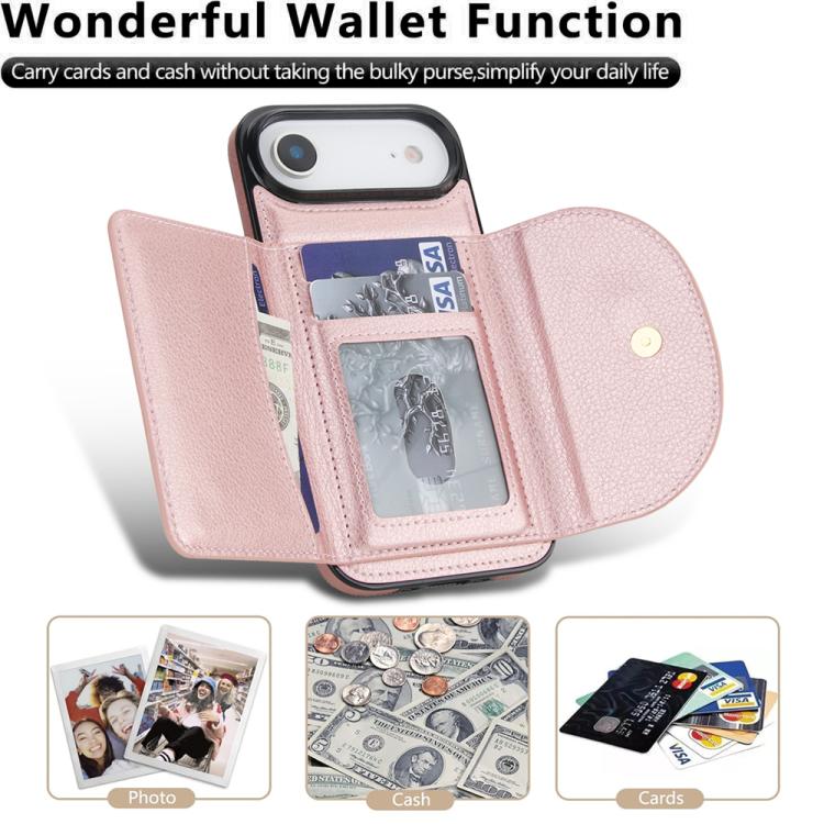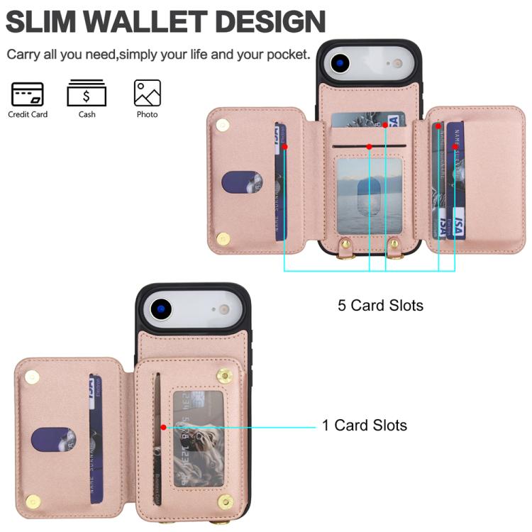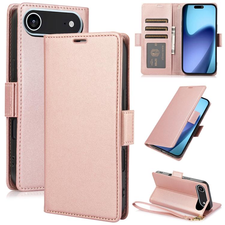 Funda de cuero antirrobo RFID con hebilla lateral para iPhone Air (oro rosa)