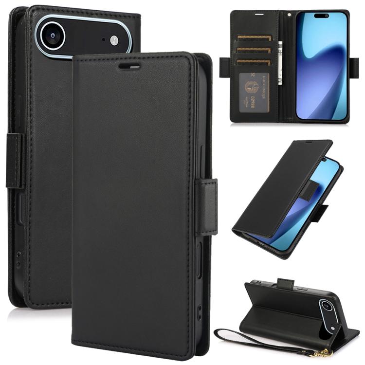 Funda de cuero antirrobo RFID con hebilla lateral para iPhone Air (negra)