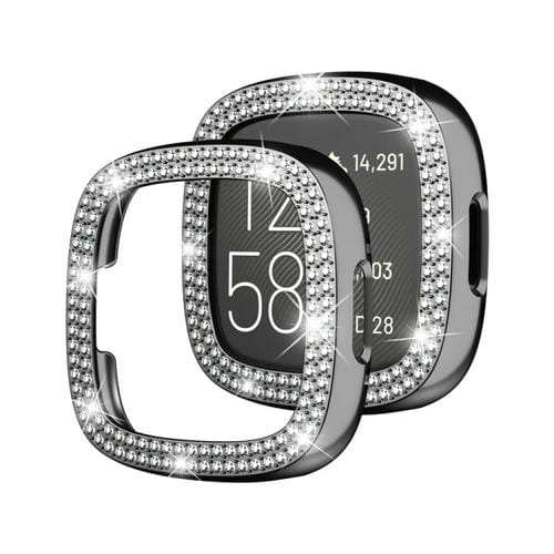 Caja de Reloj para Fitbit Versa 4 Ahuecada Galvanoplastia Diamante Doble Fila (Negro)